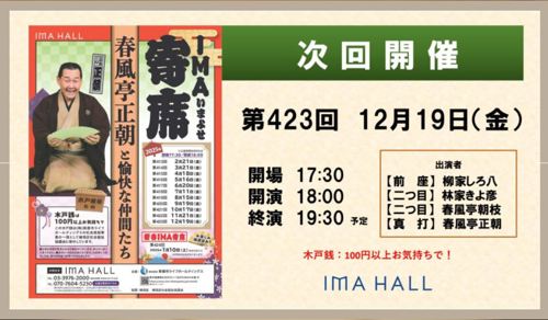 二軒目は、光が丘IMAホールで第423回IMA寄席です